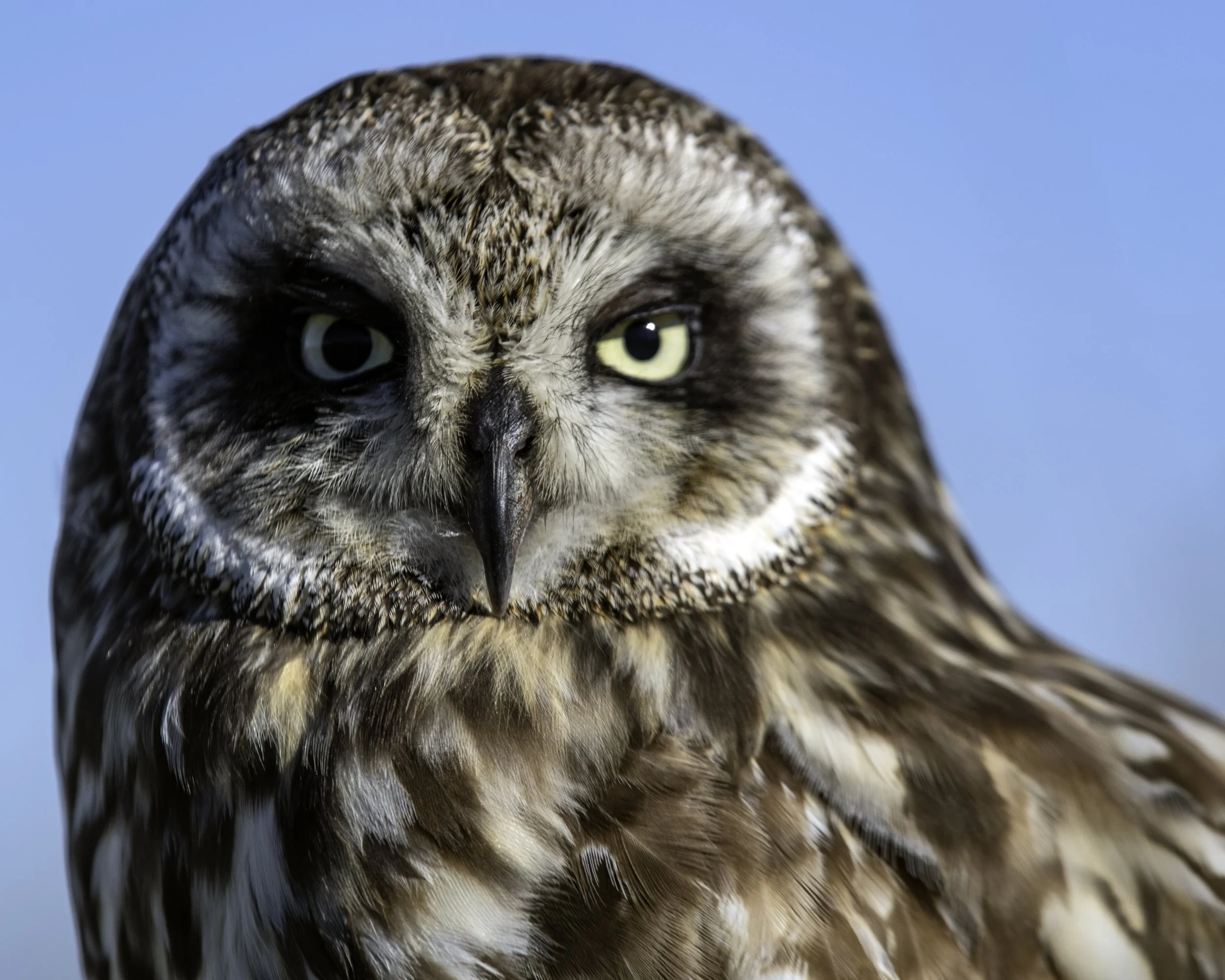 Extreme close up portrait of a Northern Pygmy Owl, photographed in Washington County.